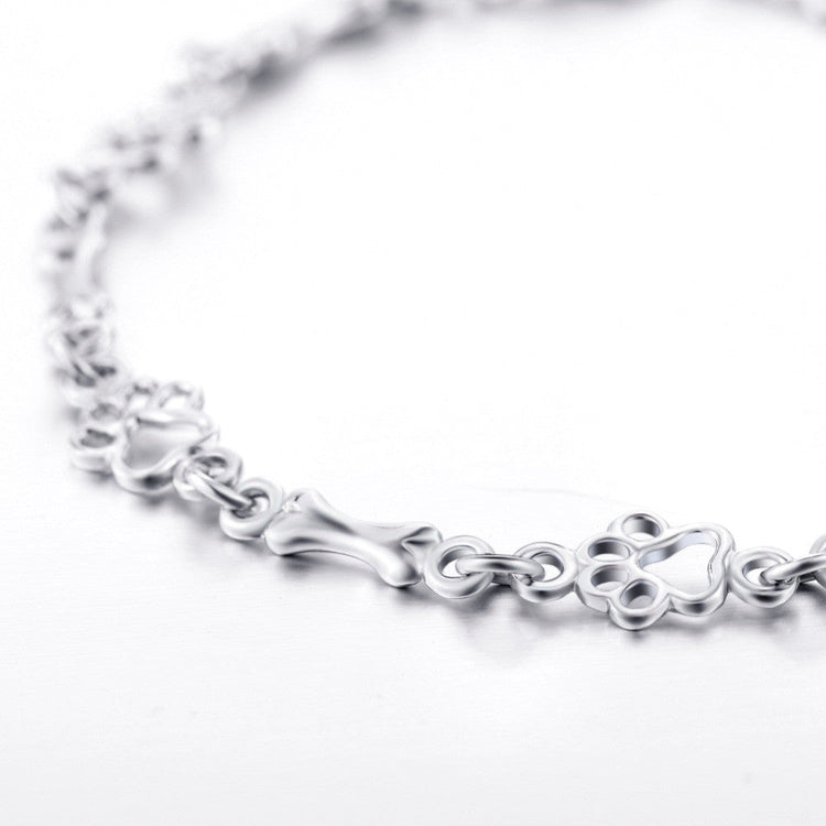 Limited Edition Pure Silver Dog Paw and Bone Charms Bracelet