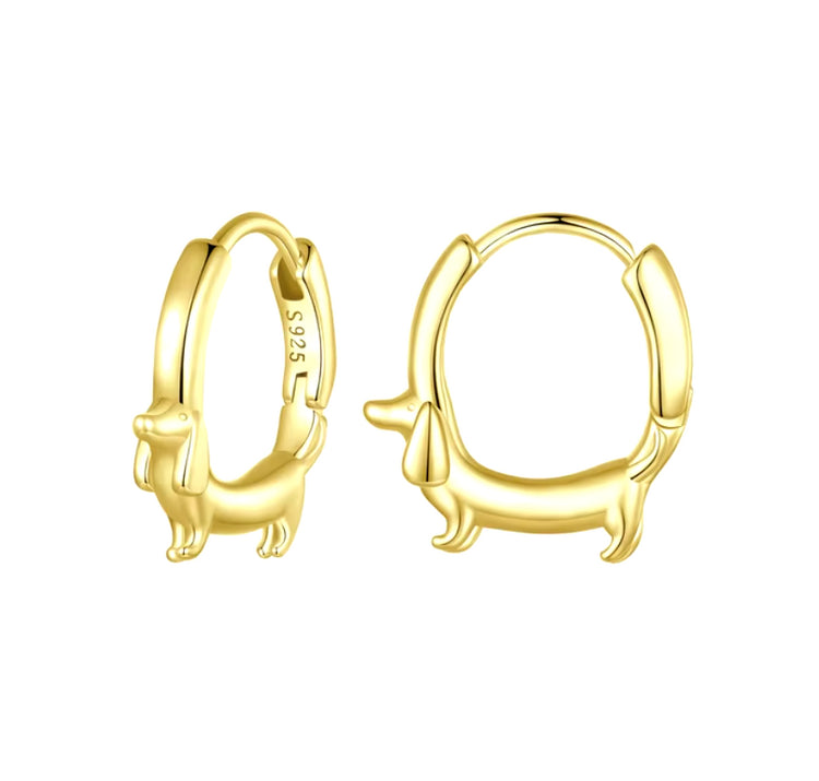 Celebrate your love for your four-legged friend with these charming dachshund hoop earrings. Crafted in premium silver and available in a luxurious gold-plated finish, these playful hoops capture the endearing spirit of everyone's favorite sausage dog. The tarnish-resistant finish ensures your precious pups keep their shine, making these earrings perfect for everyday wear and cherished conversations.